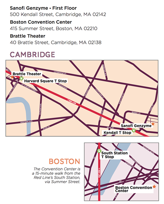 Google map to Brattle Theater and Sanofi Genzyme.